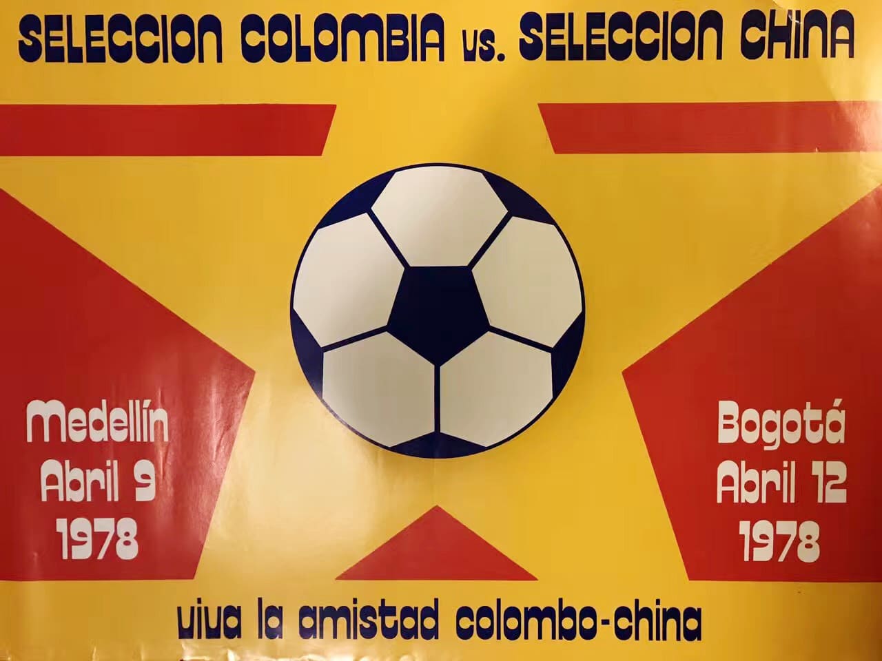 Afiche del partido de fútbol entre la selección colombiana y china en 1978.