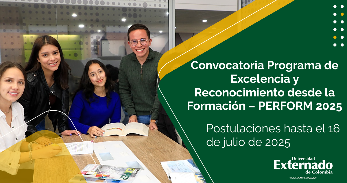 La Universidad Externado de Colombia se complace en anunciar la apertura de la Convocatoria 2025 del Programa de Excelencia y Reconocimiento desde la Formación – PERFORM, una iniciativa que reafirma nuestro compromiso con la formación continua y el fortalecimiento del talento humano de nuestra comunidad académica y administrativa.