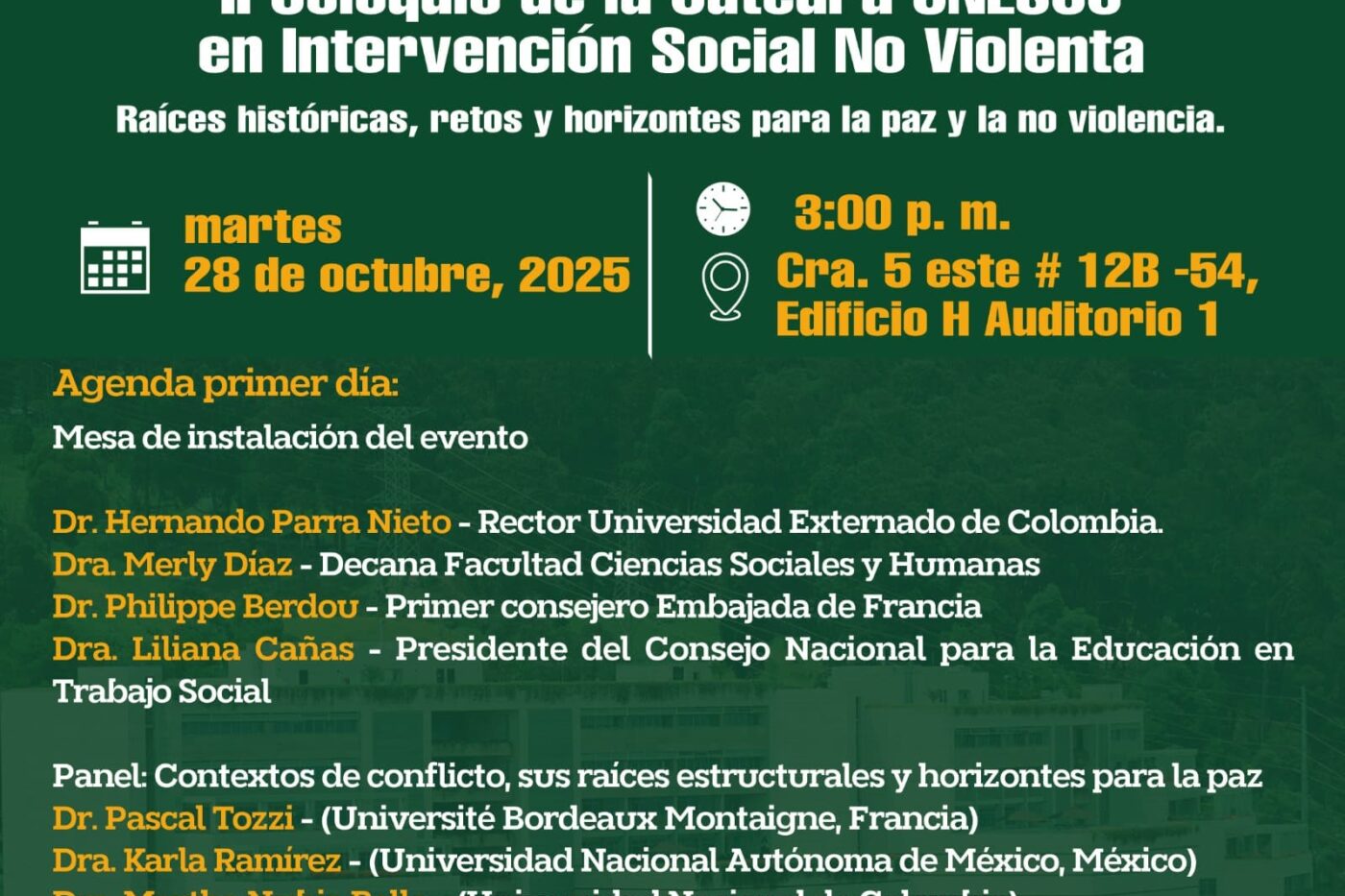 El 22 de octubre en Colombia se conmemora el día del Trabajo Social y que mejor que celebrarlo junto al II Coloquio Internacional de la Cátedra UNESCO, en el que se discutieron las formas, concepciones y modos en que la intervención social es constructora de paz y con base en eso, nuestro rol como profesional en el país como gestores de la paz.