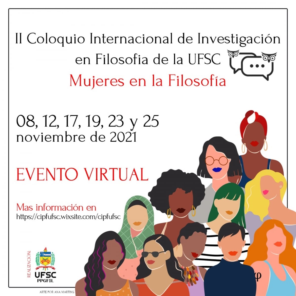 La UFSC presenta el II Coloquio Internacional de Investigación en Filosofía, que tendrá lugar los días 8, 12, 17, 19, 23 y 25 de noviembre de manera virtual y será transmitido en vivo a través de YouTube.