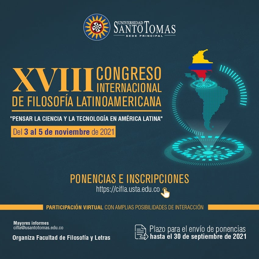 El Congreso Internacional de Filosofía Latinoamericana (CIFLA), organizado desde hace varias décadas por la Facultad de Filosofía y Letras de la Universidad Santo Tomás, es uno de los principales eventos académicos en el continente que han contribuido sustancialmente a la promoción de la filosofía latinoamericana. La versión XVIII de este año 2021, […]