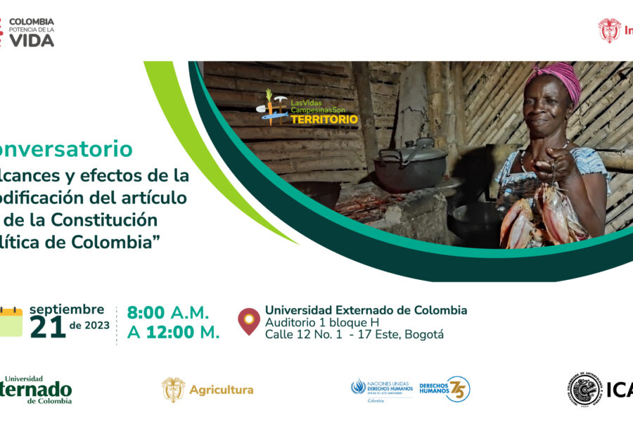 La Universidad Externado de Colombia anuncia un relevante conversatorio sobre los impactos de la modificación del Artículo 64 de la Constitución, en colaboración con la ONU y el Ministerio del Interior, donde expertos, analizarán los cambios políticos, sociales y económicos para el campesinado. Invitados incluyen ministros, altos funcionarios públicos, congresistas, organizaciones sociales y expertos en derechos humanos. Próximo 21 de septiembre en el Bloque H auditorio1 a las 8:00 am de la Universidad Externado de Colombia