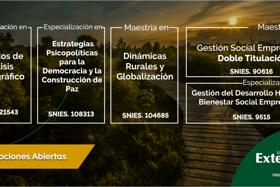 El Área salud conocimiento médico y sociedad de la Facultad de Ciencias Sociales y Humanas, en cabeza de su director Mauricio Aponte Canencio, presenta la Especialización en Estrategias Psicopolíticas para la Democracia y la Construcción de Paz. Este programa tiene como objetivo formar expertos con sentido pragmático, innovadores en estrategias de la Psicología Política, con enfoque interdisciplinario para la construcción de democracia y paz.